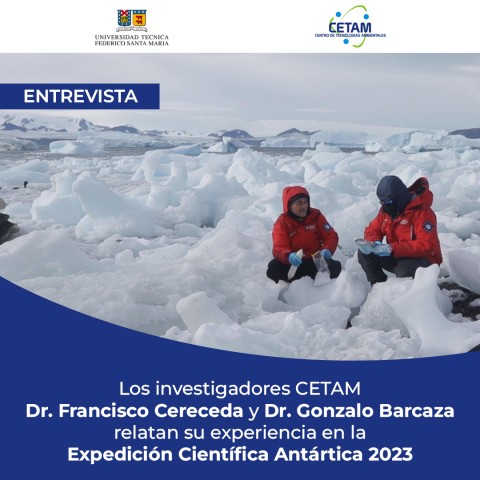 El director del Centro de Tecnologías Ambientales (CETAM) de las UTFSM, Dr. Francisco Cereceda y el glaciólogo e investigador asociado al CETAM, Dr. Gonzalo Barcaza, relatan su experiencia en la Expedición Científica Antártica (ECA 59), en el marco del proyecto RT 43-21, del Instituto Chileno Antártico (INACH), durante las primeras semanas de enero 2023.