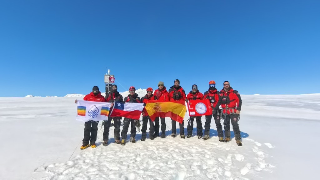 🎥 Los científicos de la expedición han completado con éxito la instalación de una estación de monitoreo en el plató de La Paloma, una meseta cercana a la Base O’Higgins, con el monte Jacquinot como telón de fondo.