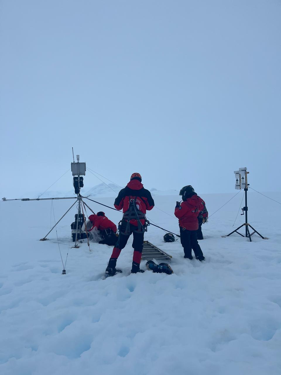 Mantener el monitoreo en la Antártida no es tarea fácil. En estas imágenes, nuestros científicos enfrentan temperaturas bajo cero y fuertes vientos mientras reemplazan las baterías de la estación de monitoreo en la meseta cercana a la Base O’Higgins.
