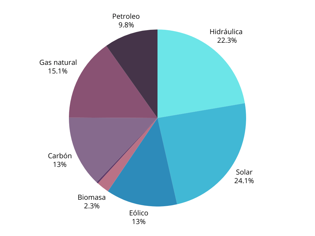 En el ámbito energético, Chile ha incrementado significativamente la participación de energías renovables no convencionales en su matriz energética. El 62,0% de la capacidad instalada corresponde a estas fuentes (22,3% hidráulica; 24,1% solar; 13,0% eólico; 2,3% biomasa; y 0,3% geotérmica) mientras que el 38,0% corresponde a fuentes térmicas (13,0% carbón, 15,1% gas natural y 9,8% petróleo). Este cambio reduce las emisiones de CO2 contribuyendo a la mejora de la calidad del aire y a la mitigación del cambio climático.