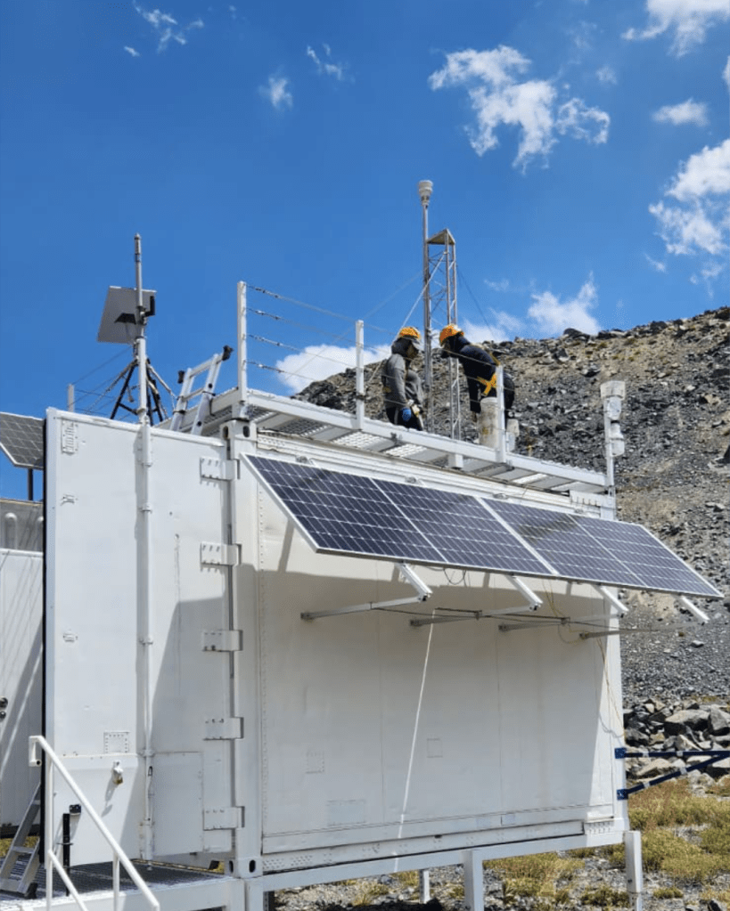 La incorporación de los analizadores de NOx ha sido posible gracias a la reciente ampliación de la infraestructura energética del NNTK-2, que incluyó la instalación de dos nuevos paneles fotovoltaicos bifaciales, así como del apoyo de la empresa Ambiente y Tecnología (AyT), quien se encarga de la mantención y calibración de nuestros equipos de monitoreo. Esta mejora permitió triplicar la capacidad de generación eléctrica del laboratorio-refugio, habilitando la operación estable de instrumentación de mayor consumo energético y funcionamiento continuo, condición indispensable para el monitoreo atmosférico de largo plazo.